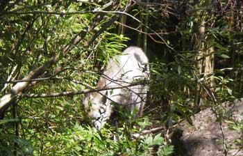 なんと数メートル先に「おことぬしさま(日本カモシカ)」が。こちらには気づいていない様で悠然と草を食べている。