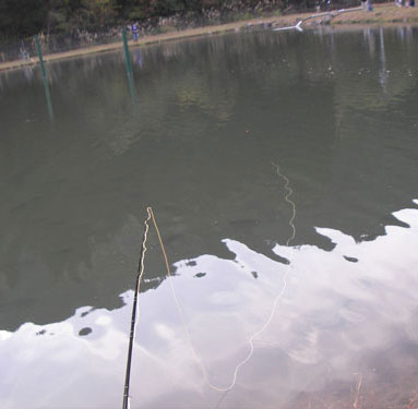 着水後、しばらく待ってピューパがクネクネ動くようにゆっくり細かくリトリーブ、スーと目印が水中に引き込まれる。