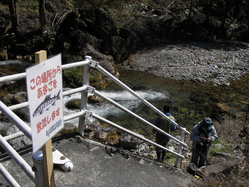 こんにちは、不覚にも釣られてしまった準天然アマゴです。この川で育ちました。