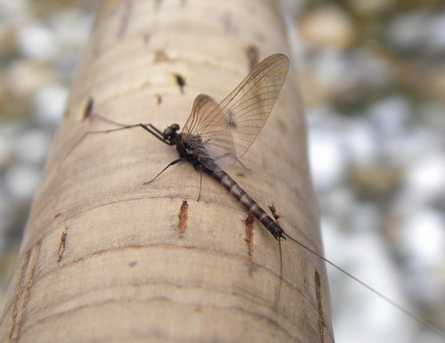 今日は、前々日の雨の影響で増水ぎみ、流れの早いところでは体力が持たないのでちょっと緩めの流れに退避していたら変な虫が流れてきたんで思わず飛びついちゃいました。